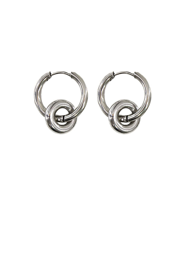.75 inch stainless steel hoops adorned with solid half inch stainless steel donuts. 1 inch total length, nickel free.