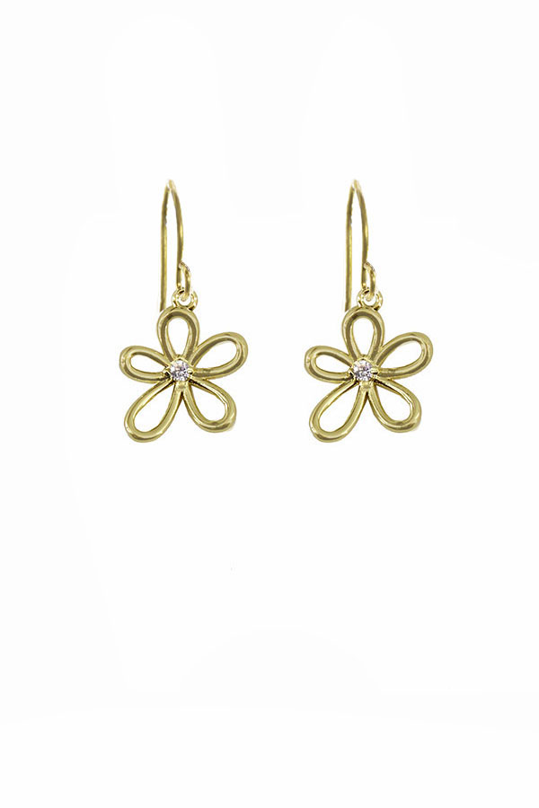 Cubic zirconia adorned 18k gold plated brass bloom on 18k gold plated stainless steel ear wires. 1.2 inches, nickel free.