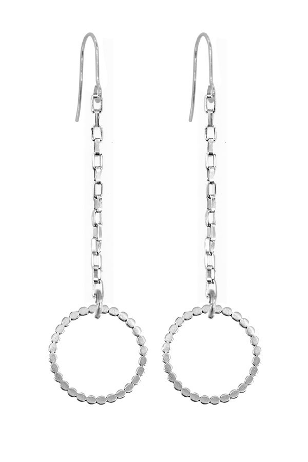 Stainless steel chain and bumpy ring drop earring. 3 inches, nickel free.