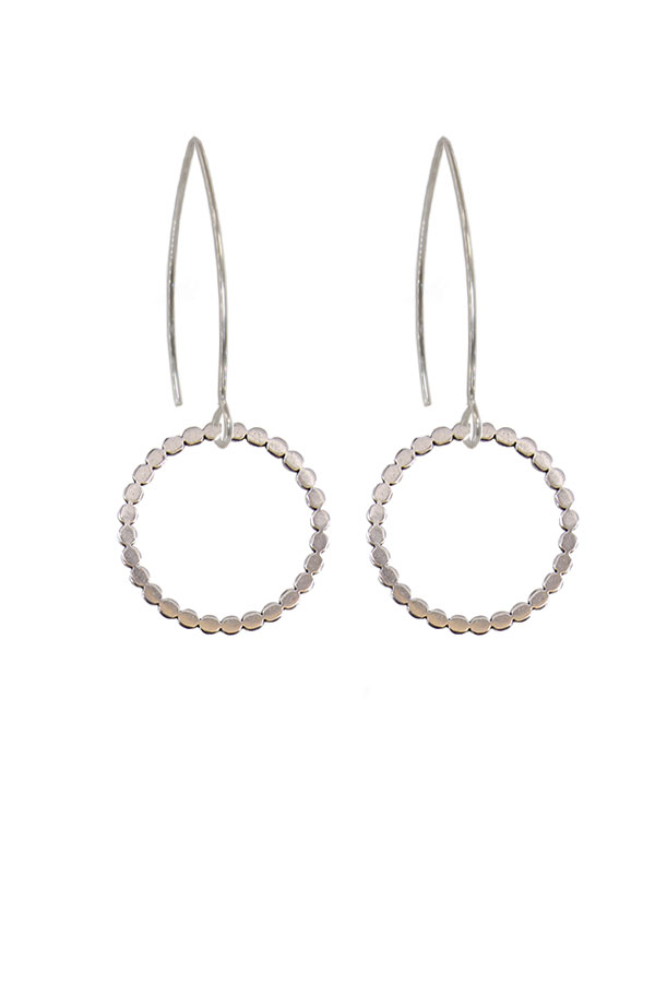 Stainless steel bumpy ring drop earring. 1.8 inches, nickel free.