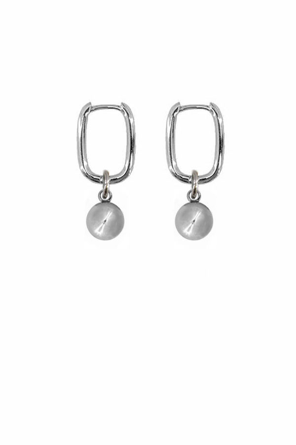Rounded rectangular hoops dangle 8mm solid spheres. Stainless steel, 1.2 inches, nickel free.